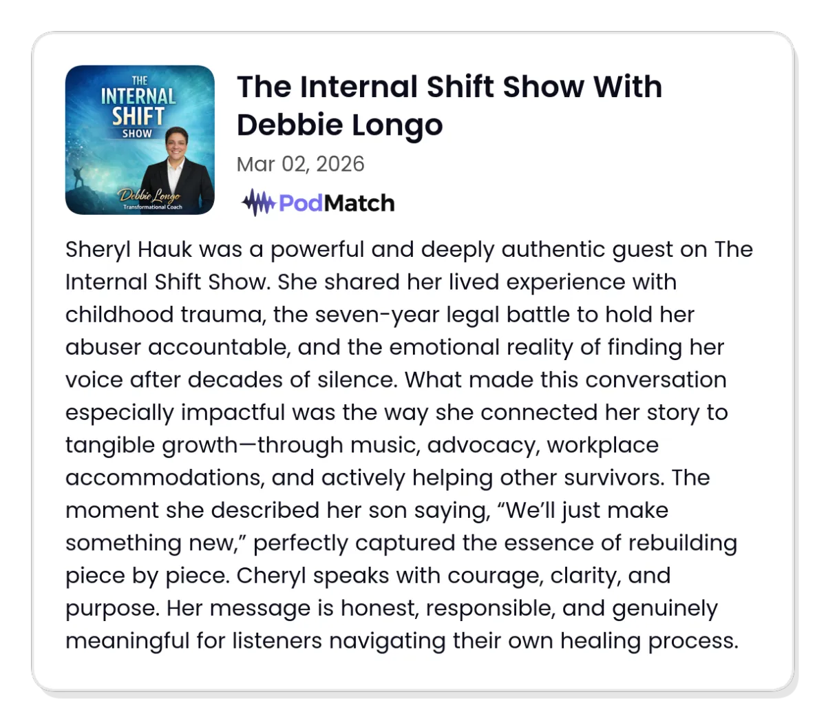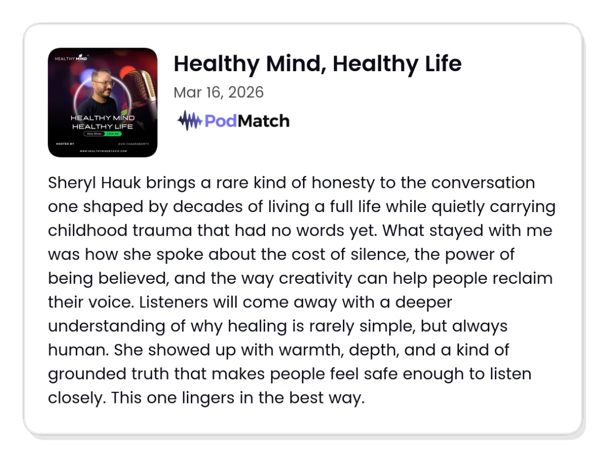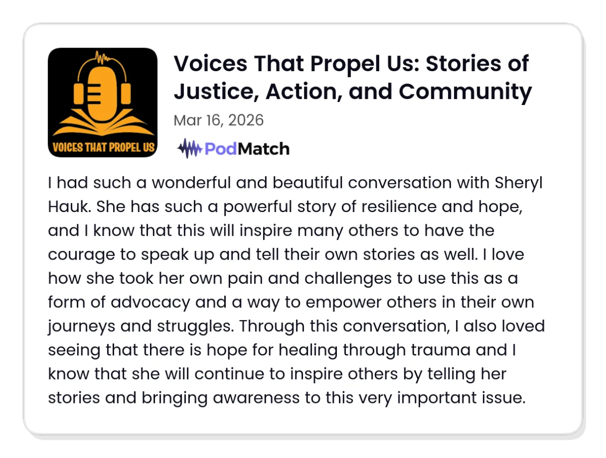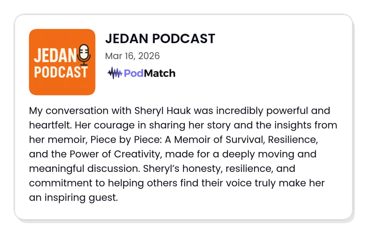 Piece by Piece - A Memoir of Survival, Resilience, and the Power of Creativity, Sheryl Hauk shares a deeply honest account of surviving childhood sexual abuse and turning that pain into purpose, creativity, and hope.