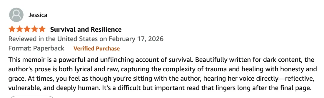 Some of the most powerful parts of the memoir focus on choice: choosing to show up for others, choosing to speak in court, choosing not to let trauma define her, and choosing to be a survivor, not a victim. This idea sits as a cornerstone of the book.